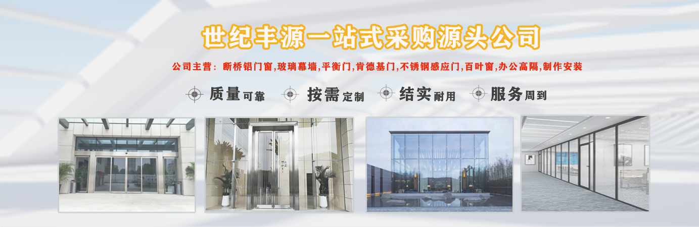 天津世紀豐源門窗有限公司從事斷橋鋁門窗,玻璃幕墻,平衡門,肯德基門,不銹鋼感應門,百葉窗,辦公高隔,制作安裝一站式訂制生產及配套服務等。 公司自成立以來,始終堅持以人才為本、誠信立業(yè)的經營原則,薈萃業(yè)界精英,成熟的技術、管理方法及企業(yè)經驗與國內企業(yè)的具體實際相結合,為企業(yè)供給各個方面的解決方案,使企業(yè)在激烈的市場競爭中始終堅持競爭力,實現企業(yè)快速、穩(wěn)定地發(fā)展。 質量好、服務好、才能信譽好,公司已在諸多領域取得輝煌成績,愿意成為您可信賴的長期合作伙伴。 讓我們攜手同行,共同實現“讓普通老百姓都用得上高端門窗”...